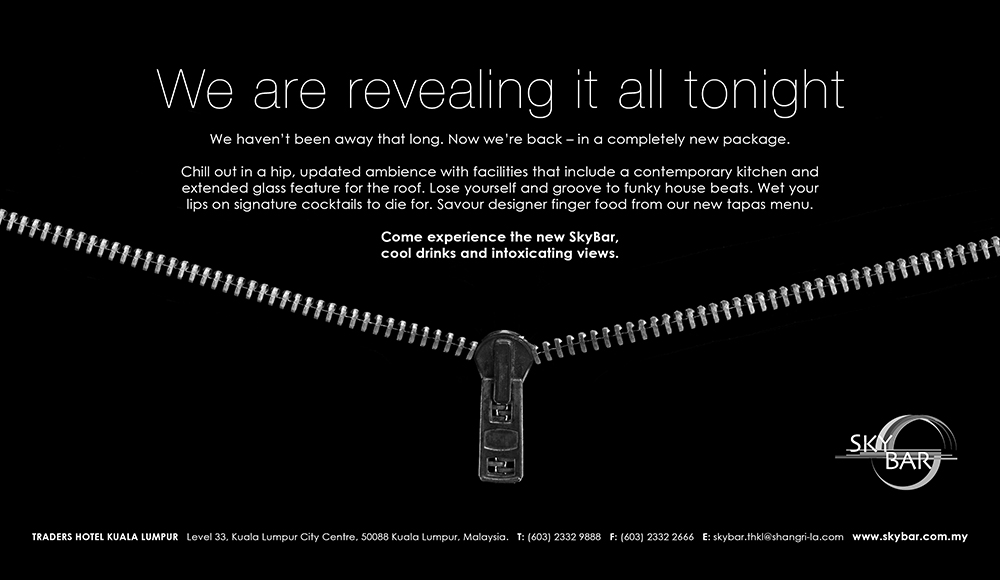 Once in a while, an ideal client comes along and consistently challenges us to push the envelope in creating edgy designs. For this, we thank Traders Hotel Kuala Lumpur, for whom we have worked with even during the pre-launching of the hotel 14 years ago. C-Square’s job scope includes design of social media marketing content, in-house digital display panels, printed posters and advertisements.