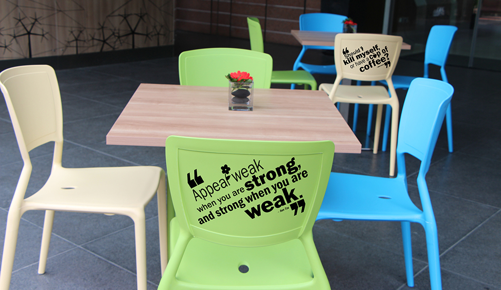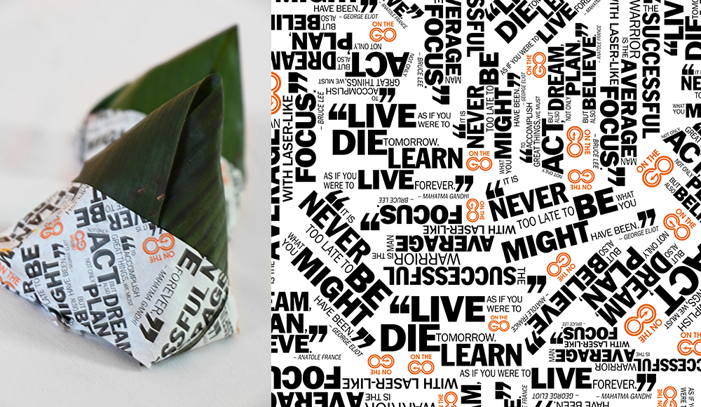 We incorporated inspirational quotes to the food packaging design. Customers who order food from the outlet will also takeaway a quotation to motivate them. Coffee and a good thought – what an ideal way to start your day!