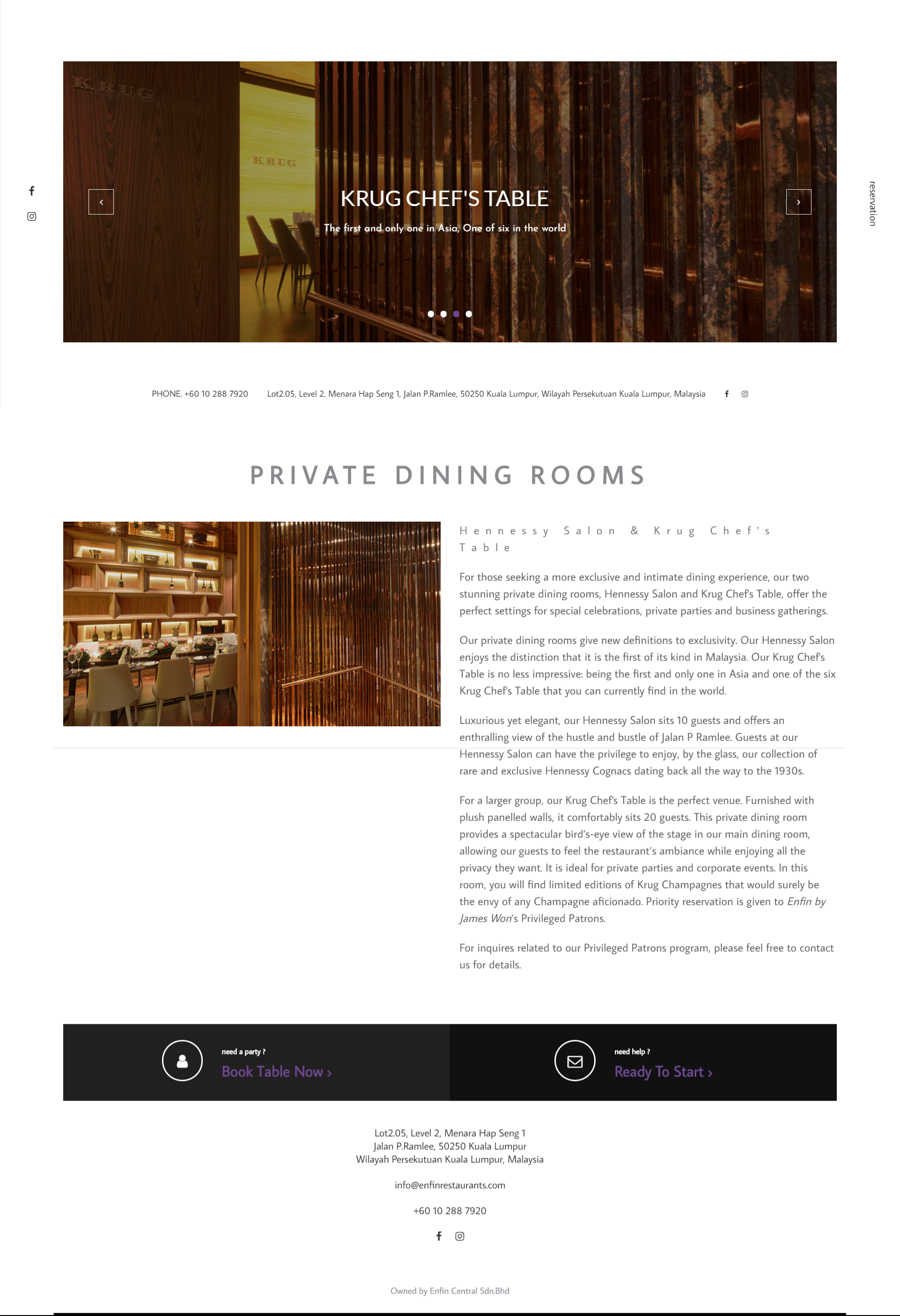 Enfin By James Won is an upmarket French restaurant in Kuala Lumpur. C-Square handled the web design and a special edition lunch menu design for James Won, taking care to reflect his restaurant’s bespoke offerings in the end product.